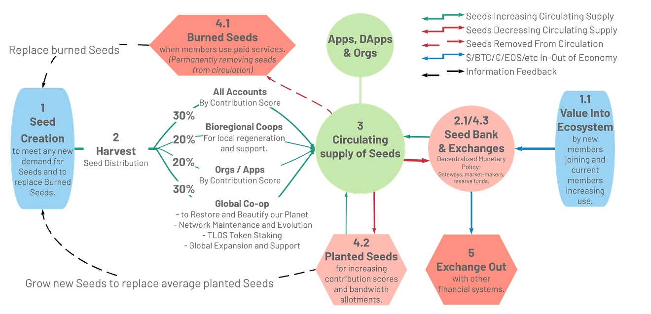 After “Go Live” (until this point Seeds are fixed-supply currency) then Seeds evolves into a fundamentally unique currency, in that they will only be created to replace destroyed Seeds and/or to meet new demand. This removes the artificial scarcity built into our current financial systems and replaces it with protocols that ensure we have exactly as much money as we need to exchange, no more (hyper-inflation) and no less (financial depressions).